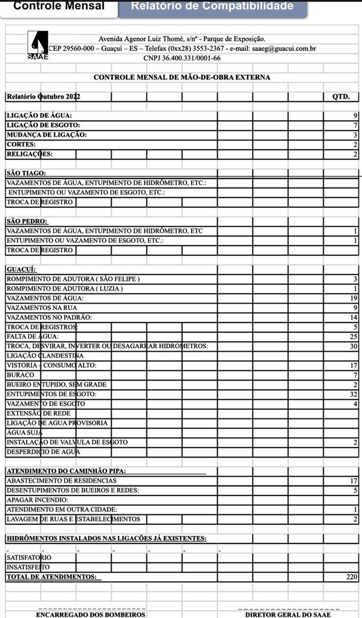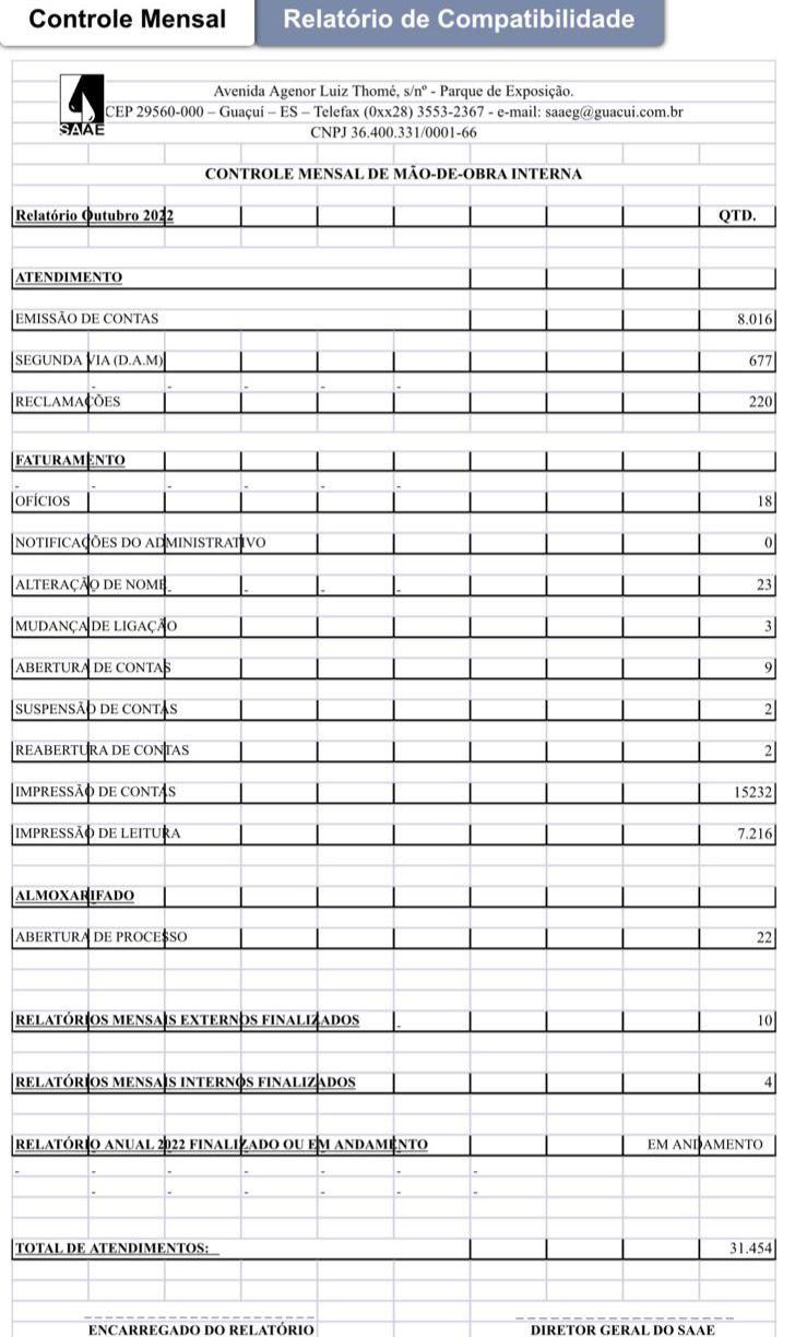 Noticia Relatório Mensal de mão-de-obra externa e interna - Outubro 2022 há 3 meses • Atendimento